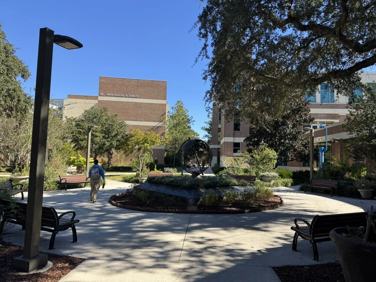 The Osprey Fountain is iconic on campus and often a photo spot.